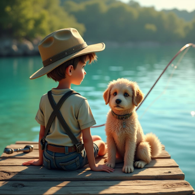Boy and Dog Fishing